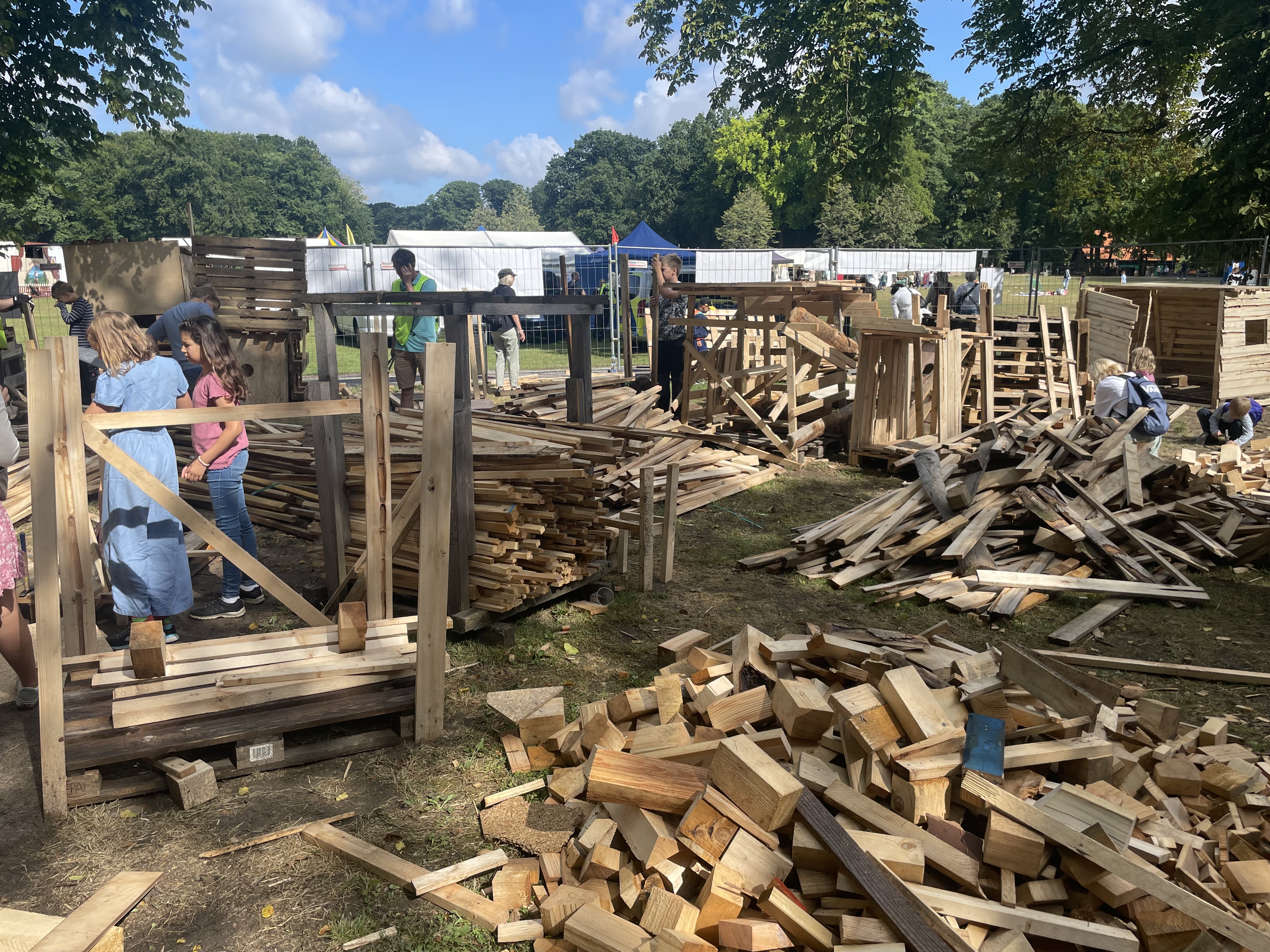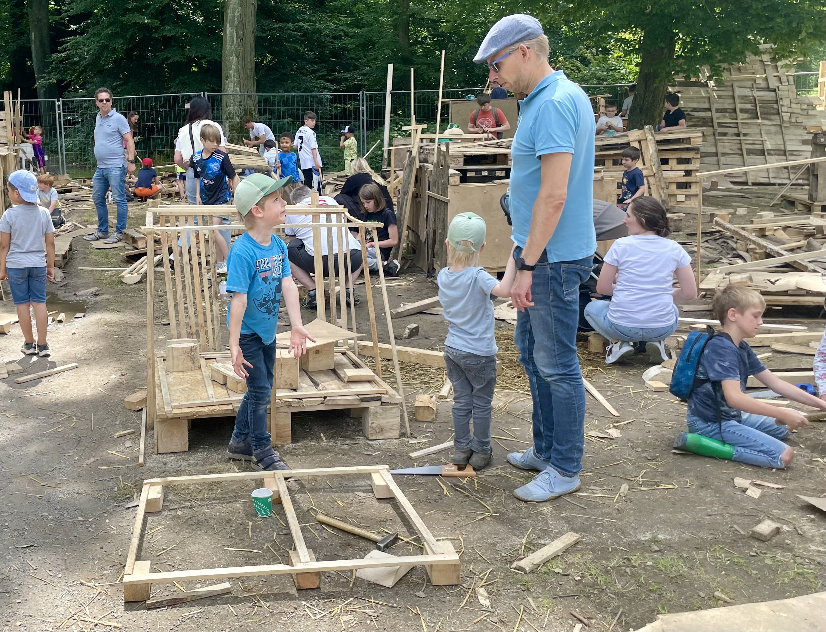Eine der vielen insgesamt angebotenen Aktivitäten ist die "Holzwerkstatt" von Lions-Gelduba: Acht Tage lang ermöglichen wir dort mehr als 200 Kindern den spielerischen Umgang mit Holz. Handwerklich erfahrene und unerfahrene Kinder (und manchmal auch deren Eltern) sind mit Begeisterung bei der Sache. Da wird gehämmert, gesägt, genagelt und geschnitten, was das Zeug hält. Das Holz kommt als Spende von befreundeten Partnern (z.B. Holz Rören). Das Werkzeug stellt der Lions Club. Und natürlich die Aufsicht - die kommt auch von uns - nebst Orga, Logistik, Versorgung und dem einen oder anderen strengen Wort, wenn - was selten passiert - mal jemand über die Stränge schlägt. Zumindest in diesem Jahr wurden nur 2 Platzverweise erteilt.