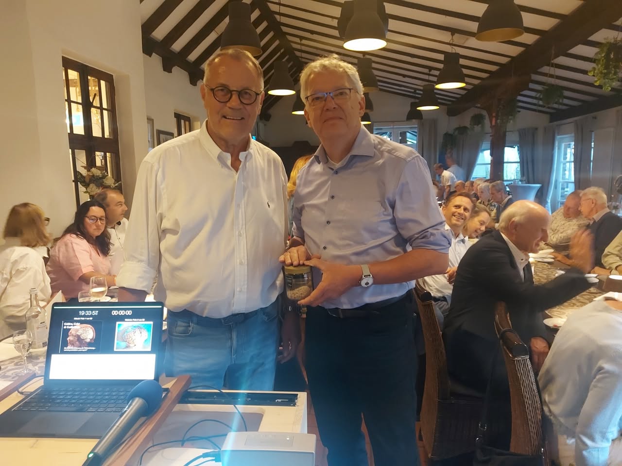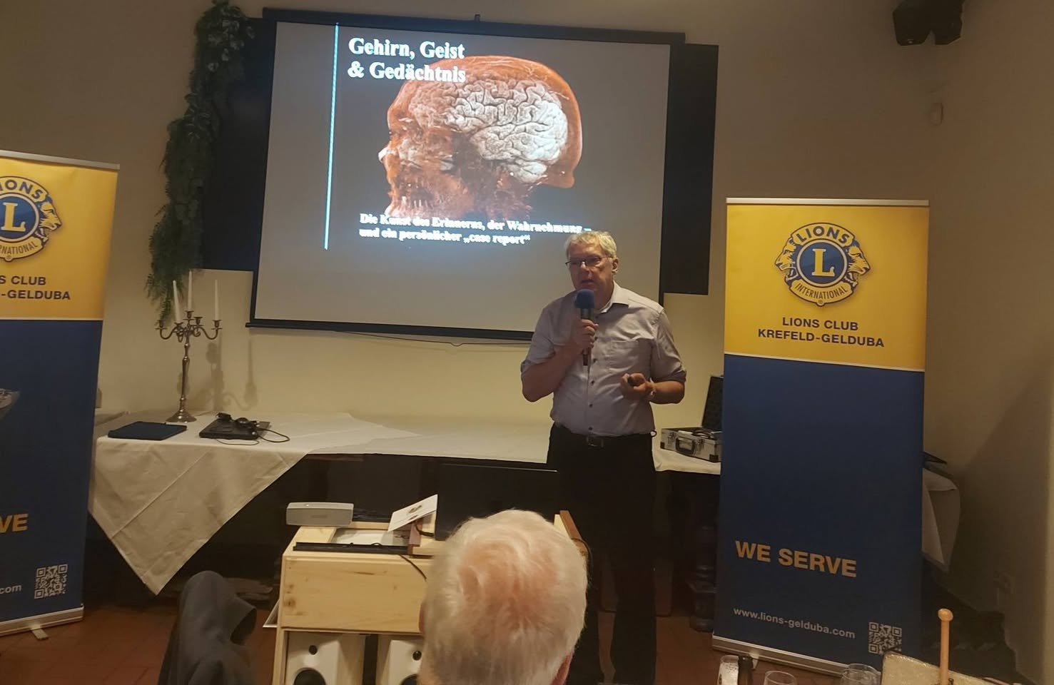 Ein spannender Vortrag des Neurologen Dr. Magnus Heier bildete den Auftakt der Clubabende der Gelduba-Lions im neuen Lionsjahr unter Leitung des neuen Präsidenten Karsten Hoyer. Heier hat eine besondere Geschichte: 2019 setzte im Urlaub nach einer Paddeltour sein Gedächtnis aus. Er erlitt eine sogenannten Transiente Globale Amnesie. Dabei speichert das Gehirn stundenlang nichts mehr ab, alles Erlebte vergisst man sofort. Heier fragte etwa nach der Paddeltour mehrfach nach einem Kaffee und trank so fünf Tassen hintereinander weg, ohne sich an die jeweils letzte zu erinnern. Nach acht Stunden arbeitete sein Gehirn wieder normal. Der Vorfall geht auf eine kurzfristige Funktionsstörung im Hippocampus zurück, einem Teil im Gehirn, das in der Form einem Seepferdchen ähnelt. Die Ursache ist nicht genau bekannt, eventuell ist es eine Durchblutungsstörung. Es bleiben keine Schäden zurück, das Hirn arbeitet danach normal weiter. Heier erzählte von dem Erlebnis, erläuterte Aufbau und Funktionsweise des Gehirns - und dies anschaulich und voller Witz. Heier wurde mir viel Applaus verabschiedet.