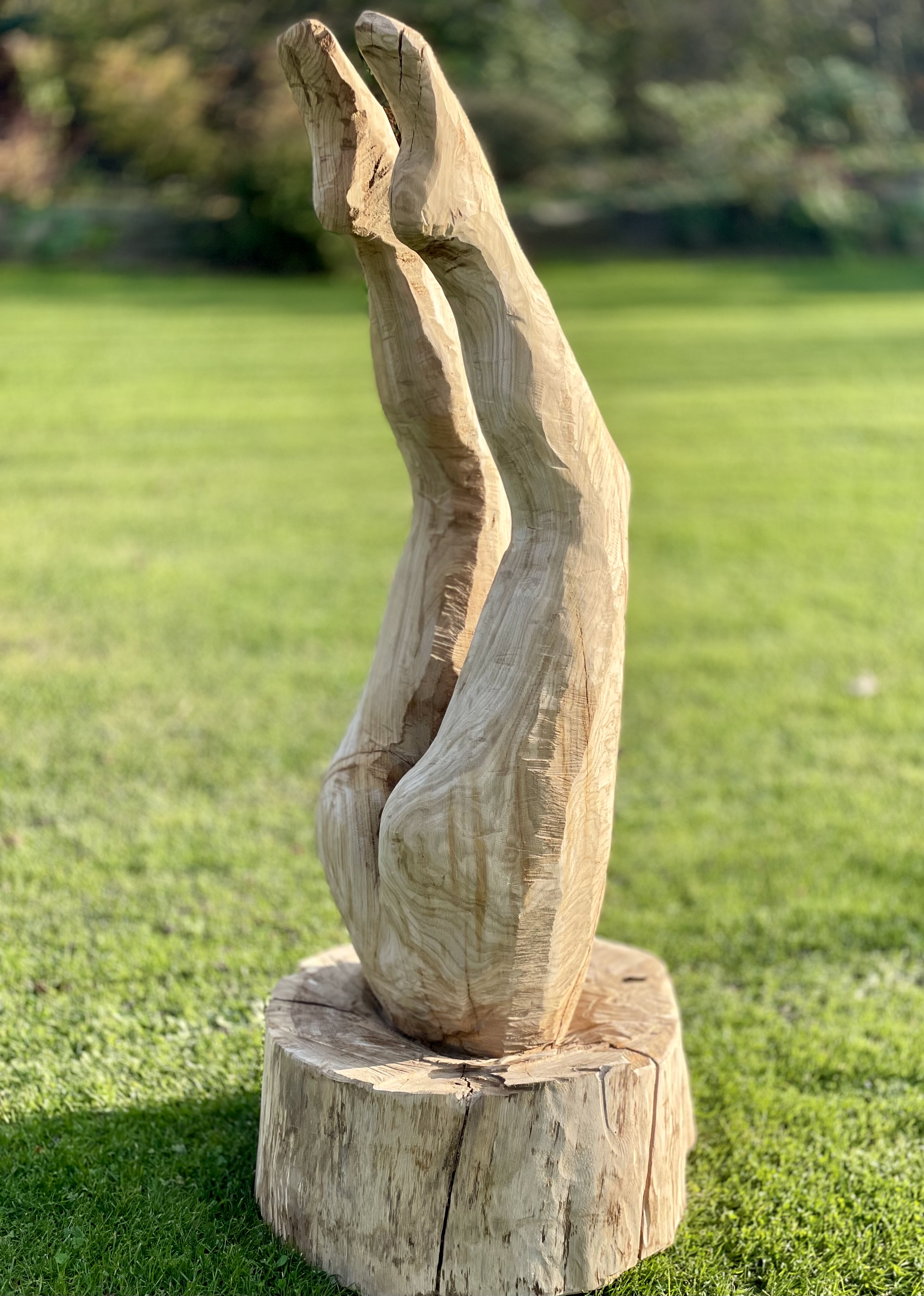 Im Winter 2023 fand wie seit vielen Jahren die Holzwerkstatt in Krefeld Traar statt. Im Rahmen dieser Activity schaffen die Mitglieder des Lions Clubs Krefeld Gelduba seit vielen Jahren zahlreiche Holzarbeiten, die Anfang Dezember auf dem Weihnachtsmarkt in Linn verkauft werden. Bereits zum vierten Mal erklärte sich Renate Tillmanns bereit, eine Kettensägenarbeit zu schaffen. Aus einerm mannshohen Eichenstamm, der händisch gar nicht mehr zu bewegen war, sonden für dessen Transport und Aufstellung schweres Gerät gebraucht wurde, schuf sie die Skulptur KOPFLOS. Ein Unikat, das wie ihre vorherigen Arbeiten auch die Verletzlichkeit des Menschen in einer diffusen Zeit herausarbeitet.